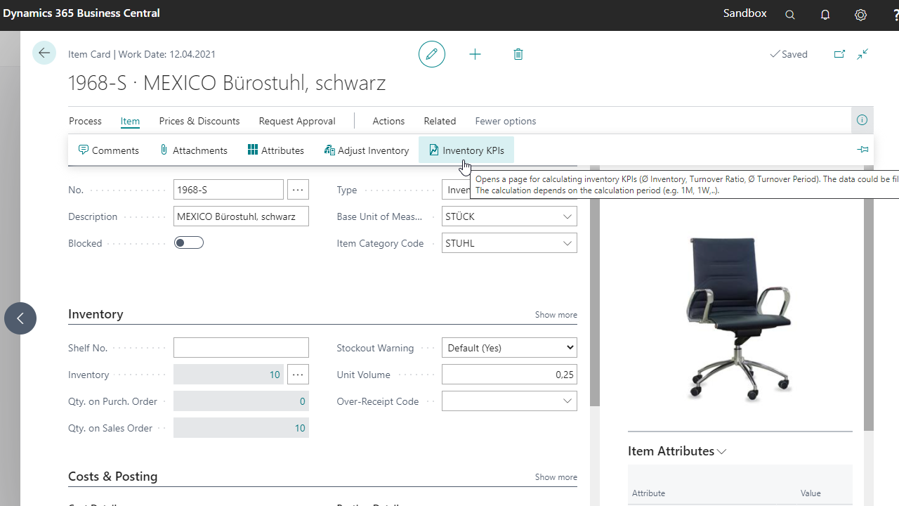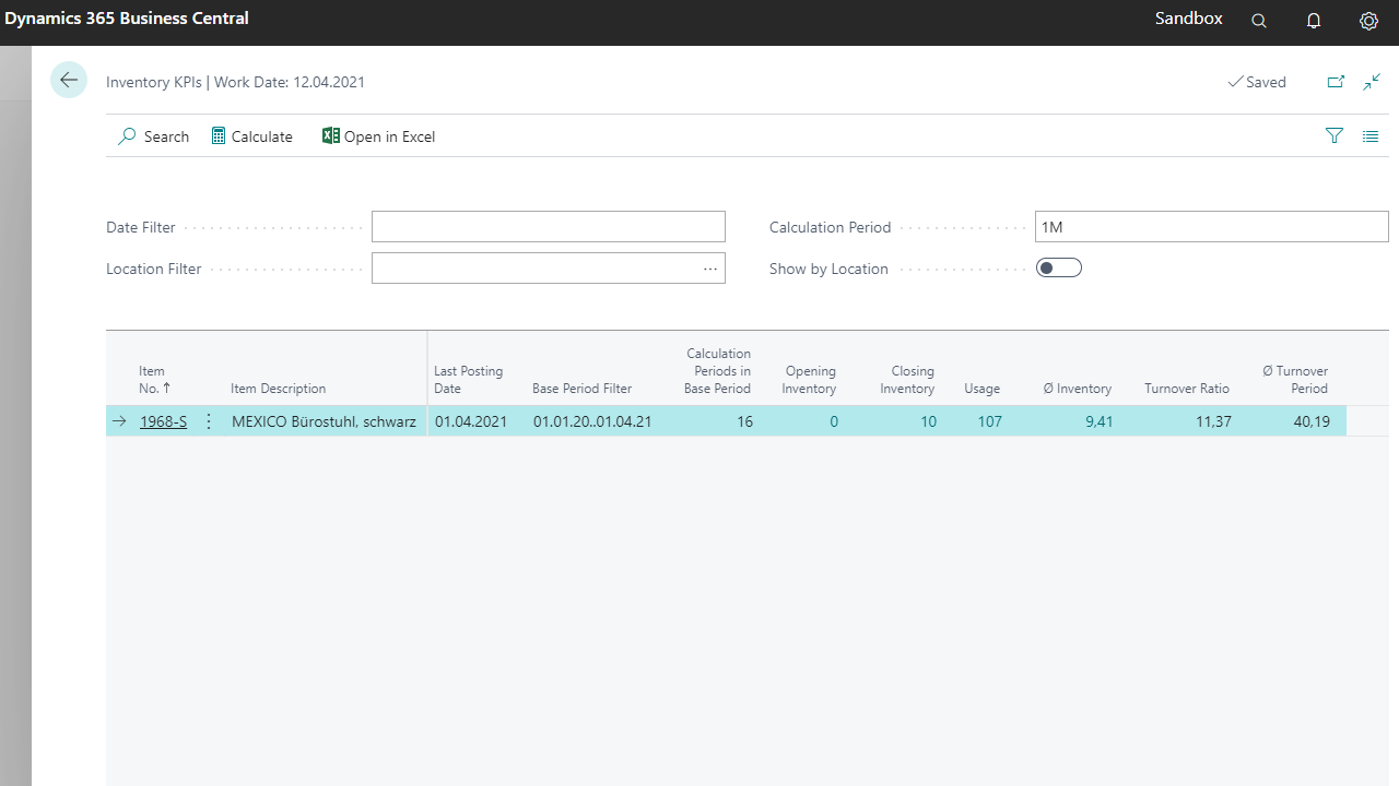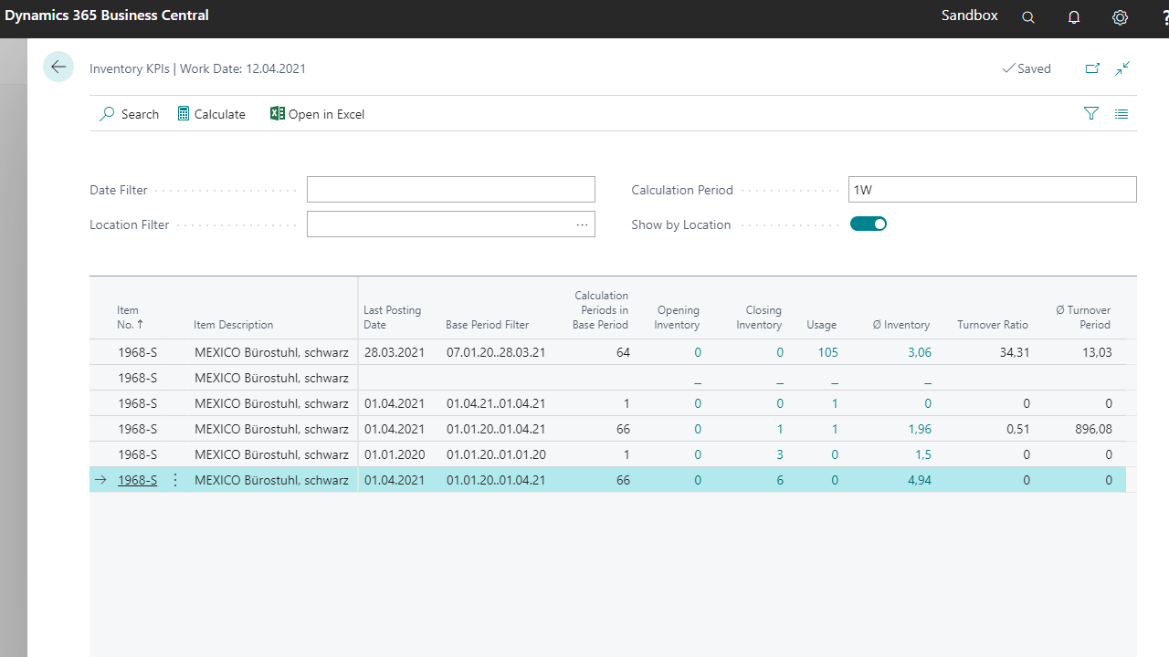 The KPIs (Ø Inventory, Turnover Ratio, Ø Turnover Period) will be calculated due to the configured setting.