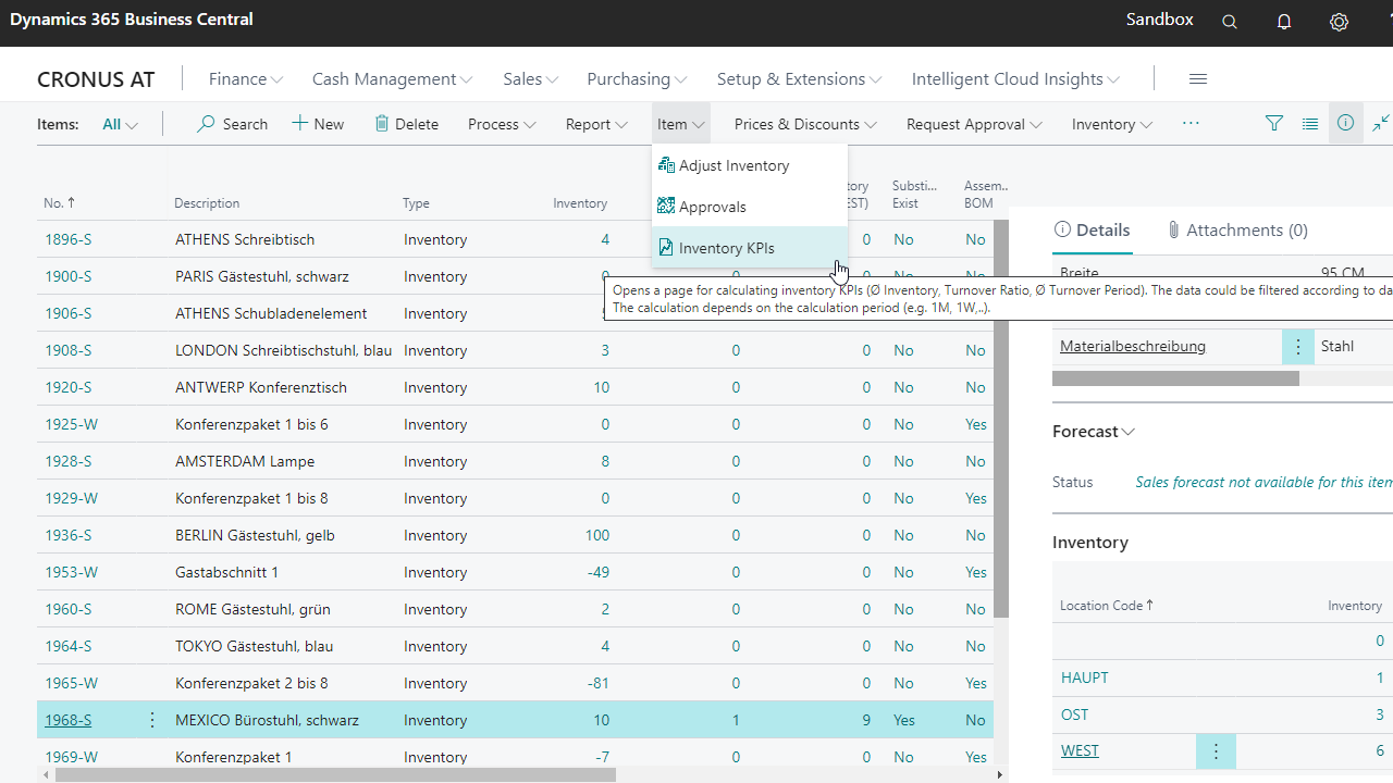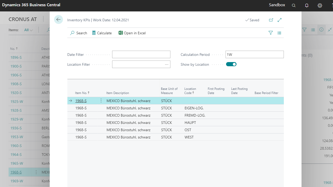 The KPIs (Ø Inventory, Turnover Ratio, Ø Turnover Period) will be calculated due to the refreshed setting.