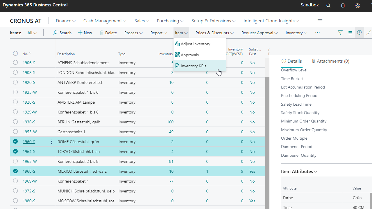 - Click on the action Inventory KPIs